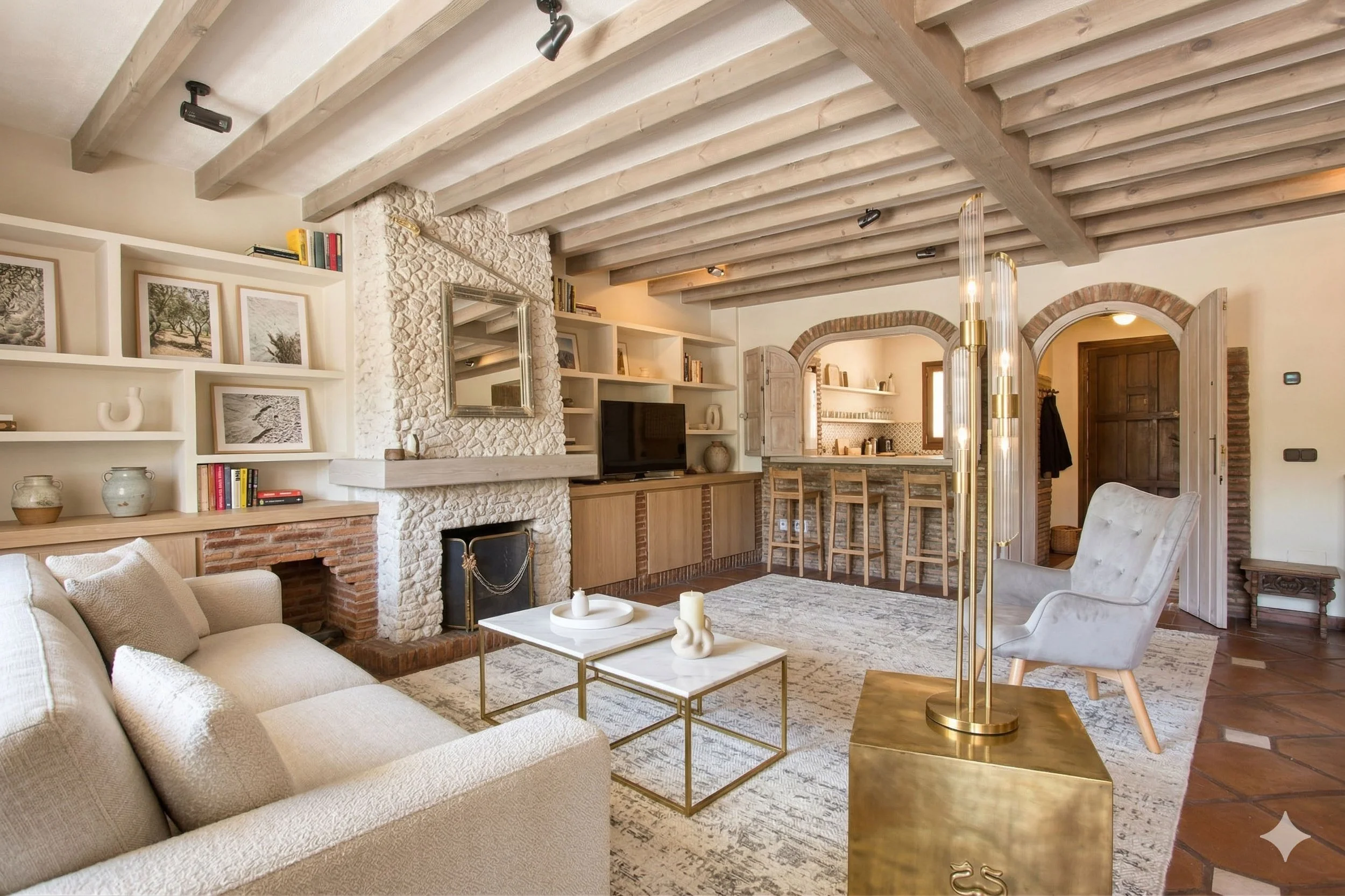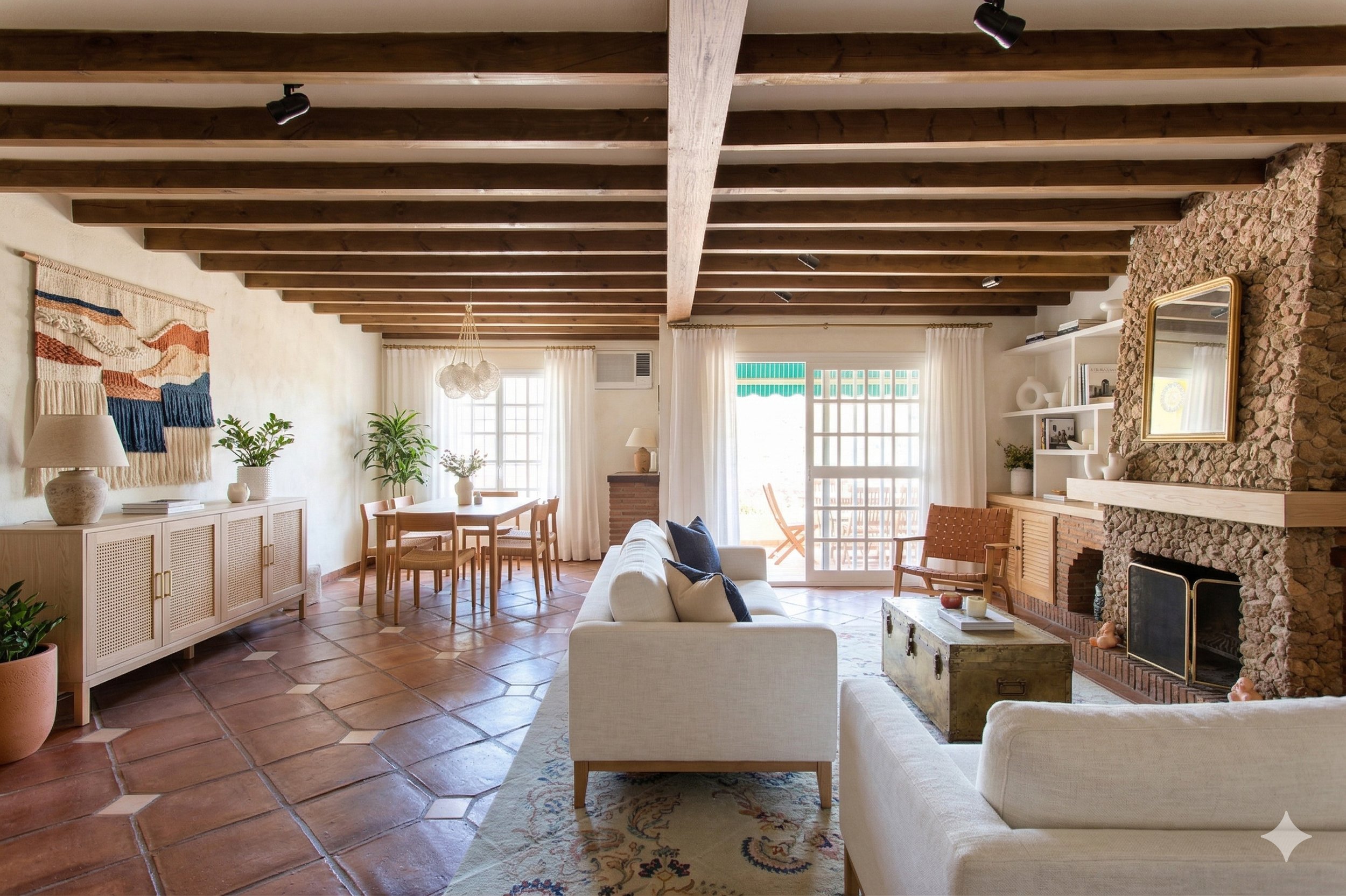 By applying a fresh coat of colour, decluttering the surfaces, and introducing a few well-selected furniture pieces, the character remains fully intact while the atmosphere feels entirely revitalized. It is remarkable to see what can be achieved with a more edited approach, proving that you can create a sophisticated, up-to-date look while keeping the authentic Spanish charm of the property.