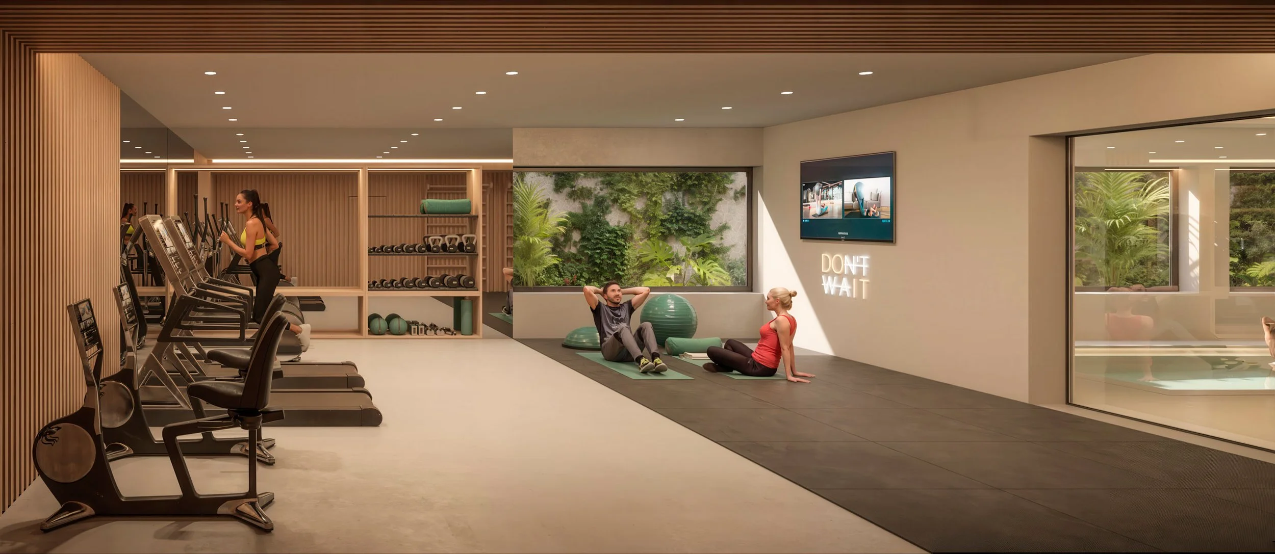 Ground-floor homes offer private gardens and beach-style pools, while penthouses boast panoramic solariums and private pools. A residential concept tailored to new ways of living on the Costa del Sol.