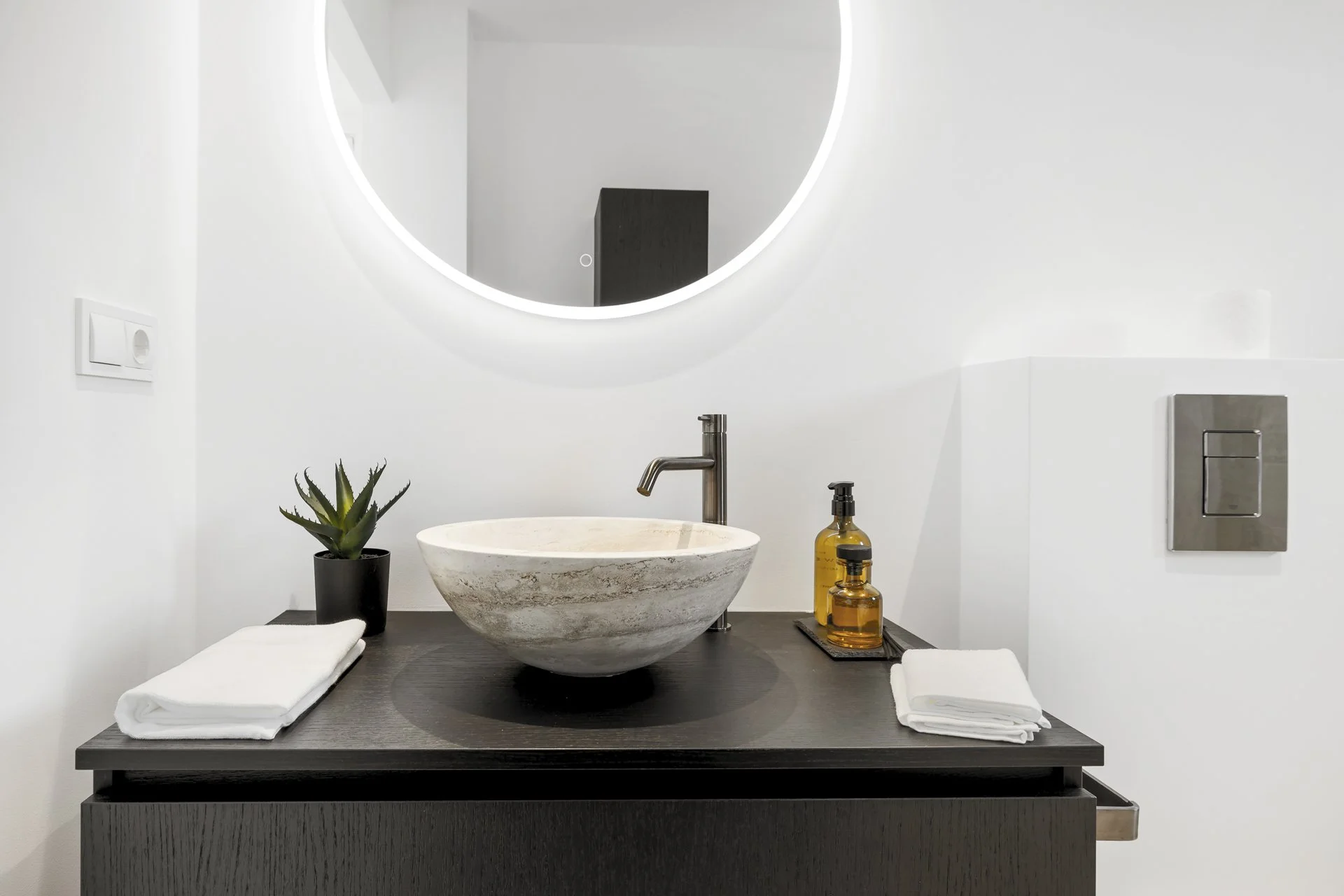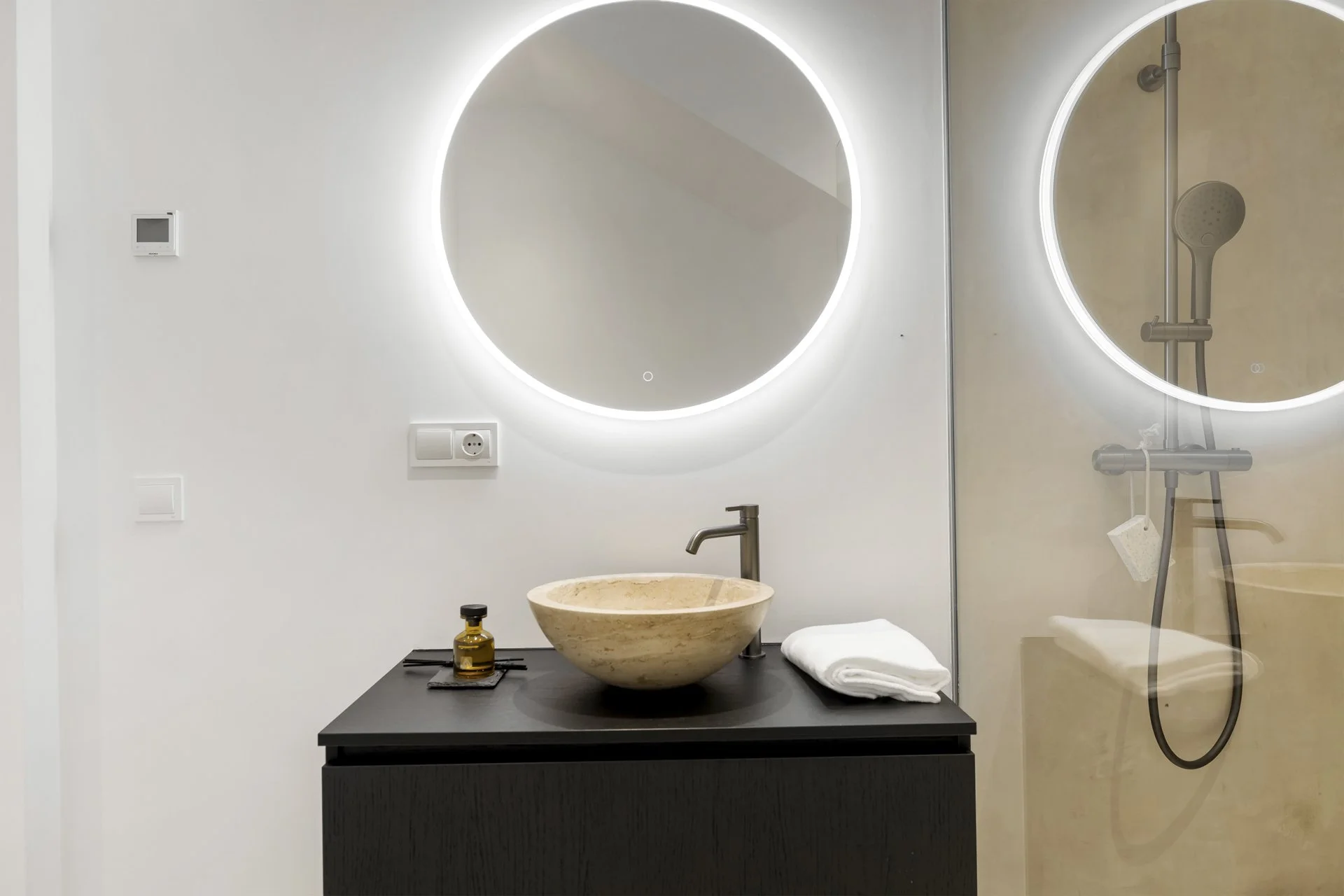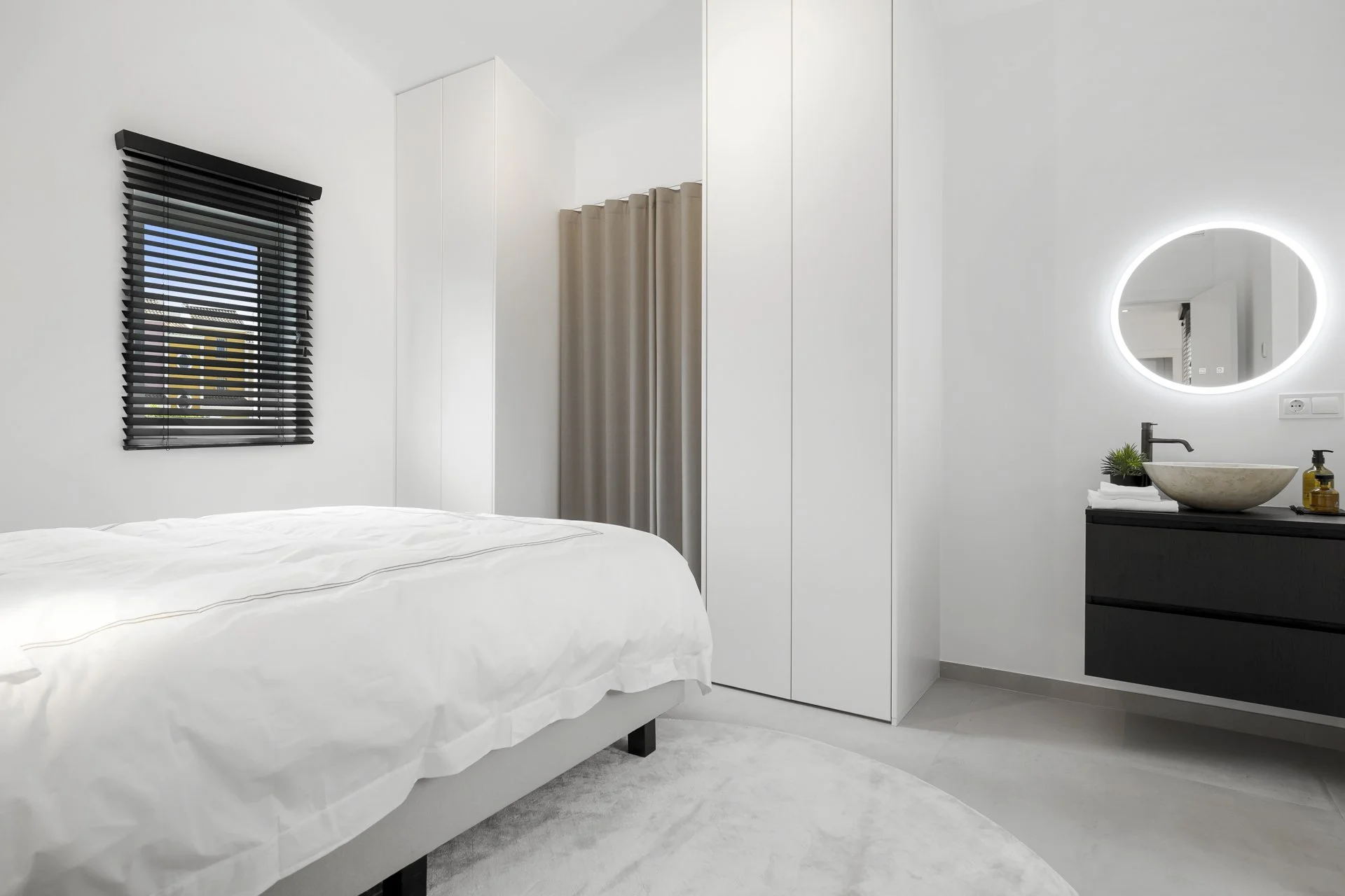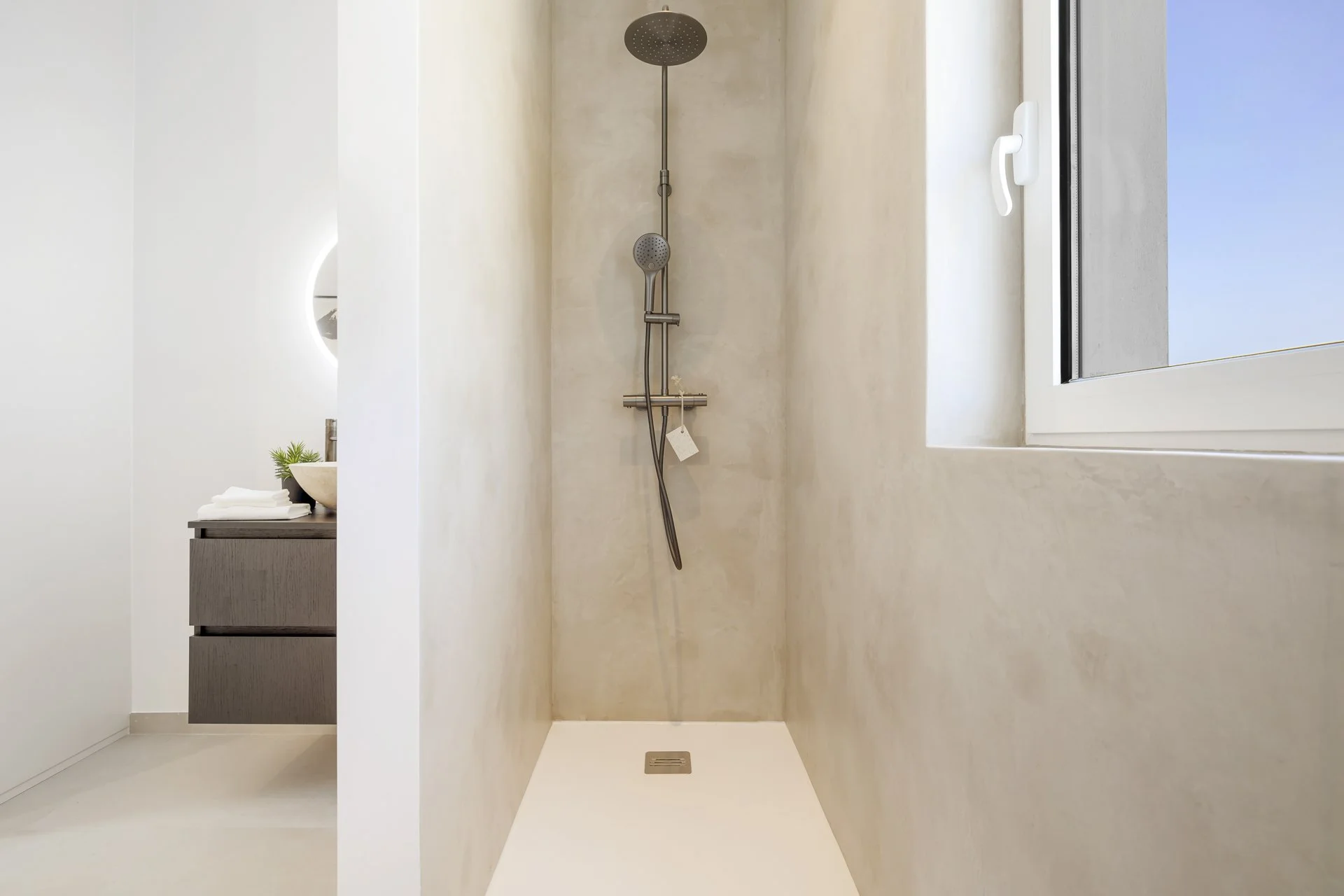 There are four generous bedrooms, each with its own ensuite bathroom. Two are located on the ground floor for easy access, while upstairs you'll find the master suite with dressing area, ensuite, and private terrace, as well as another beautifully finished room with its own bathroom.